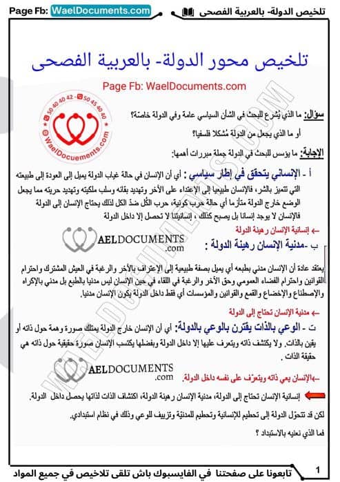 ، المحتوى: تلخيص بالتونسي و بالفصحى ، تمارين و فرض بالإصلاح ، منهجية الفقرة الفلسفية