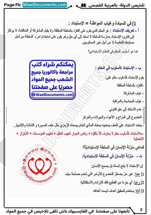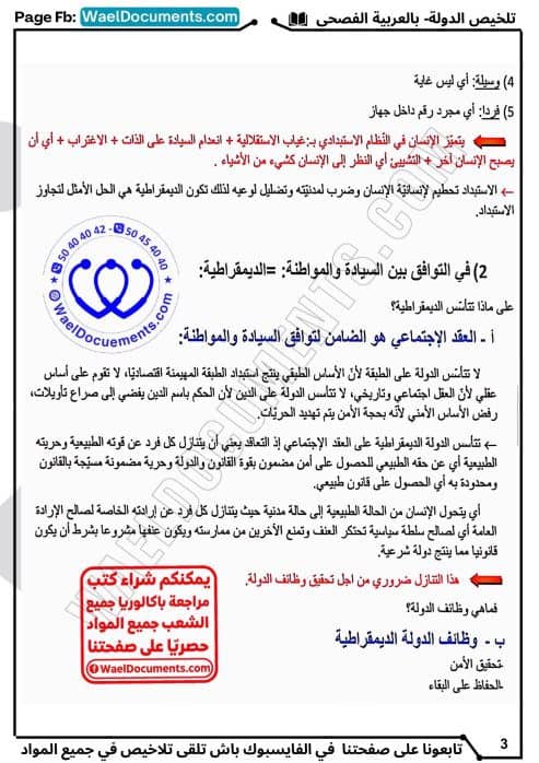 \text { تلخيص محور الدولة- بالعربية الفصحى }