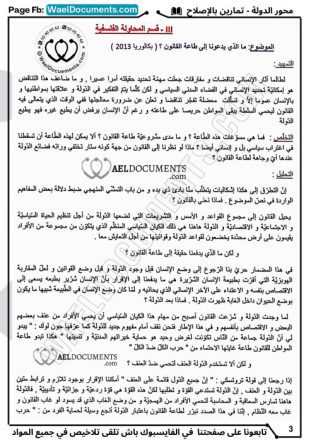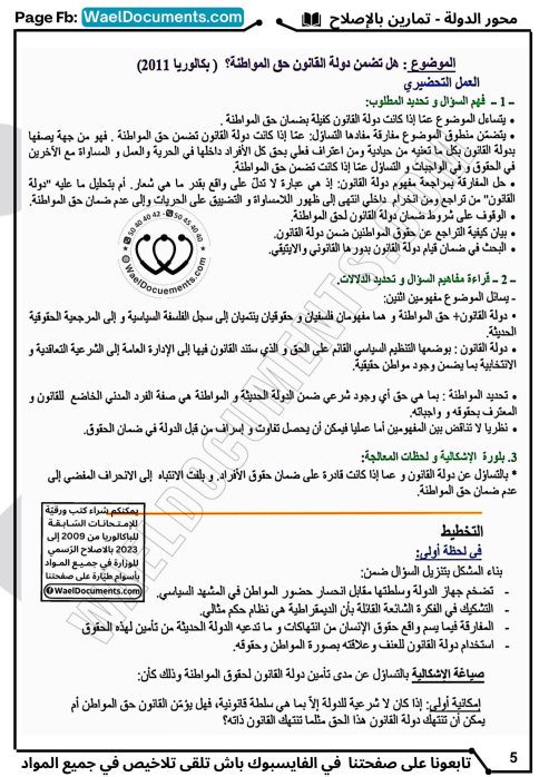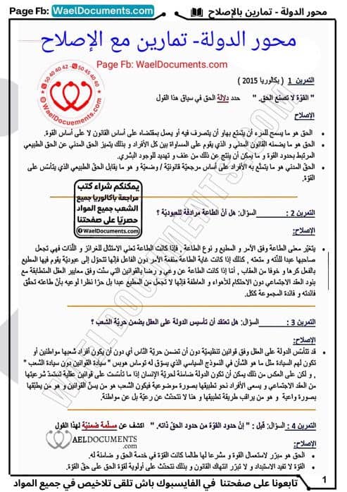äولّ $\cdot$ تلخيص بالتونسي للدّولة $\cdot$ تلخيص بالفصحى وشواهد $\cdot$ تمارين بالإصلاح حول النمذجة $\cdot$ فرض بالإصلاح حول النمذجة منهجية القيام بفرض فلسفة