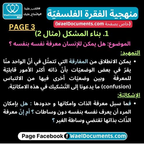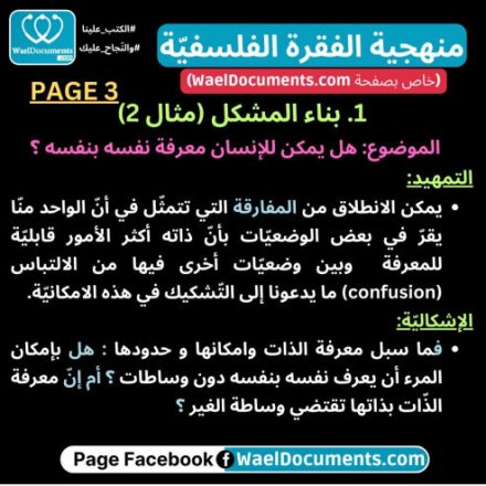 $\cdot$ استنتاج-جزئي:الإنيّية لا تتحقق إلاّ كوعي خالص بالذّات الدات. $\cdot$ تنسييب الموقف والاعتراضِ عليه: نبيّن أنّه لا نتوصّل دائما إلى فهم Page Facebook $\mathbf{f}$ WaelDocuments.com