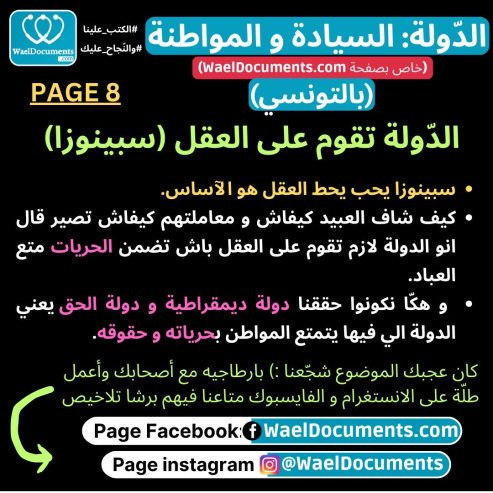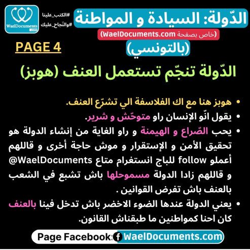 $\cdot$ يحب الصّراع و الهيمنة و راو الغاية من إنشاء الدولة هو تحقيق الأمن و الإستقرار و موش حاجة أخرى و قاللهم @WaelDocuments أعملو follow للباج انستغرام متاع و قاللهم زادا الدولة مسموحلها باش تشبع في الشعب بالعنف باش تفرض القوانين $\cdot$ $\cdot$ يعني الدولة عندها الضوء الاخضر باش تدخل فينا بالعنف كان احنا كمواطنين ما طبقناش القانون. Page Facebook: $\mathbf{f}$ WaelDocuments.com