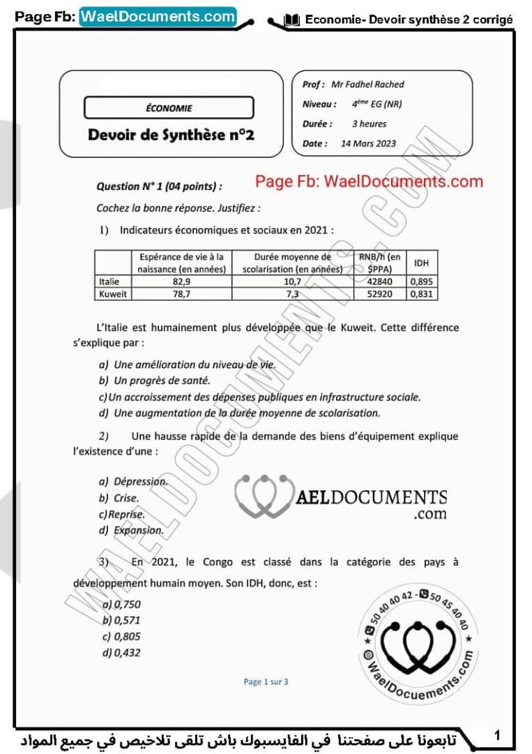 Justification: l’IDH de l’Italie est plus élevé que le Koweït malgré que ce dernier a un niveau de vie meilleur alors, l’Italie est humainement plus développée par ce que l’Etat a mieux investit dans la santé et l’éducation puisque l’espérance de vie à la naissance et la durée moyenne de scolarisation dépassent celles du Koweït ( $82,7>78,7$ ans; 10,7 ans $>7,3$ ans). $(0,5)$