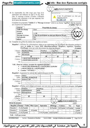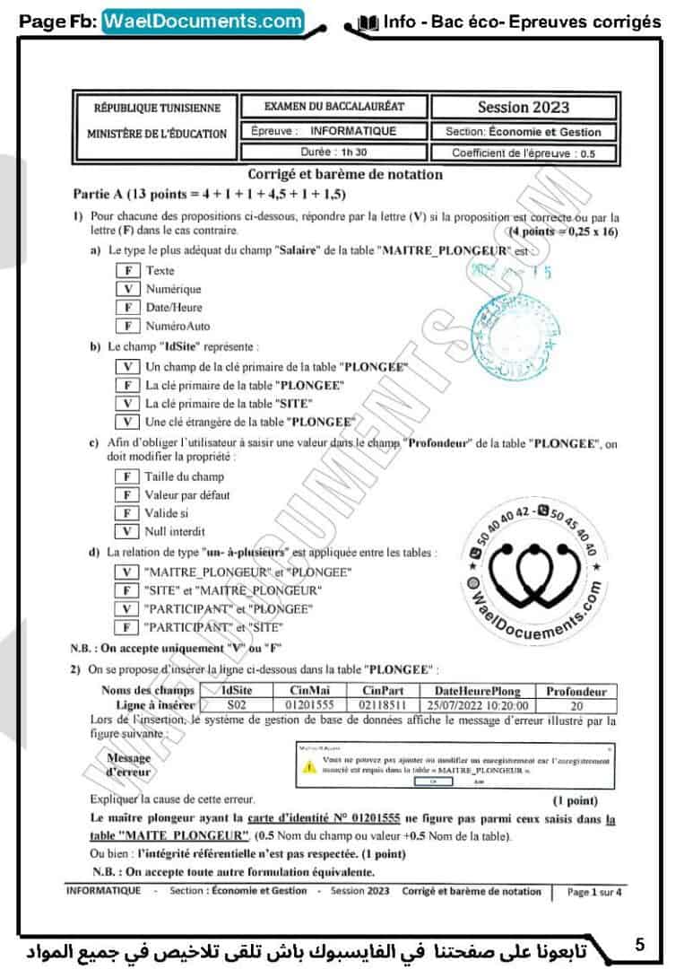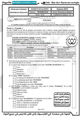 Épreuve : Informatique – Section : Économie et Gestion – Session 2023