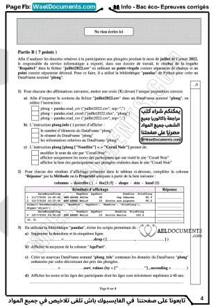 Important : Dans le répertoire Bac2022 situé sur la racine du disque $\boldsymbol{C}$ de votre poste, créez un dossier de travail portant votre numéro d’inscription (6 chiffres) et dans lequel vous devez enregistrer, au fur et à mesure, tous les fichiers solutions de ce sujet.