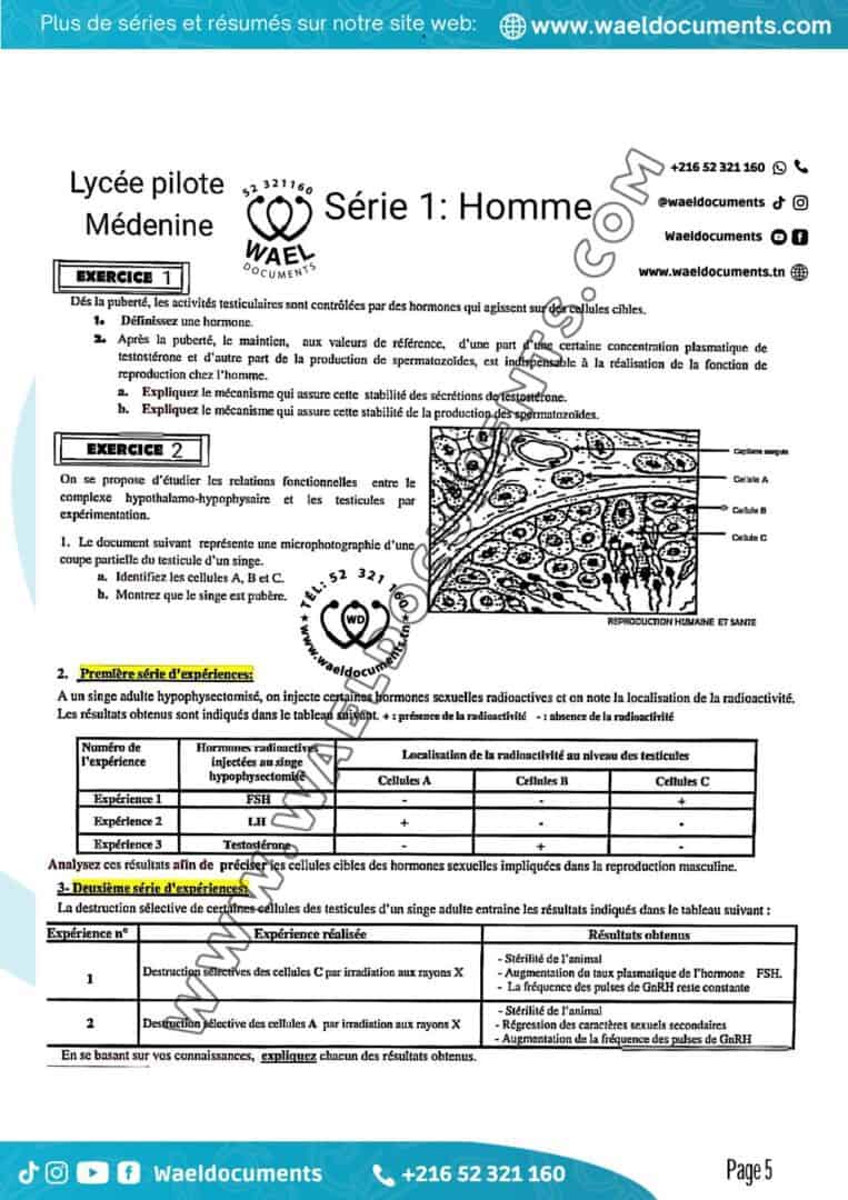 Waeldocuments vous présente une série SVT – pilote Médenine constituée de 5 exercices variés et corrigés avec détails.